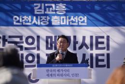 목, 2026/01/22- 15:57 에 admin 에 의해 제출됨 지역 인천 동구강화군옹진군 더불어민주당 김교흥 국회의원(인천 서구갑)이 오는 6·3 지방선거에서 인천시장 출마를 공식 선언했다. 민주당과 국민의힘 인천시장 출마 예정 후보자 중 공식 출마 선언은 김 의원이 처음이다. 김 의원은 22일 5·3 민주항쟁이 발생한 옛 인천시민회관쉼터에서 “인천의 자긍심을 드높이고, 인천을 더 위대하게 만들겠다”며 인천시장 출마를 공식 선언했다. 김 ... 링크 https://www.khan.co.kr/article/202601221557001/amp Tags 지방선거 Like 0 Dislike 0 댓글 달기 이름 제목 Comment 저장 Preview Leave this field blank