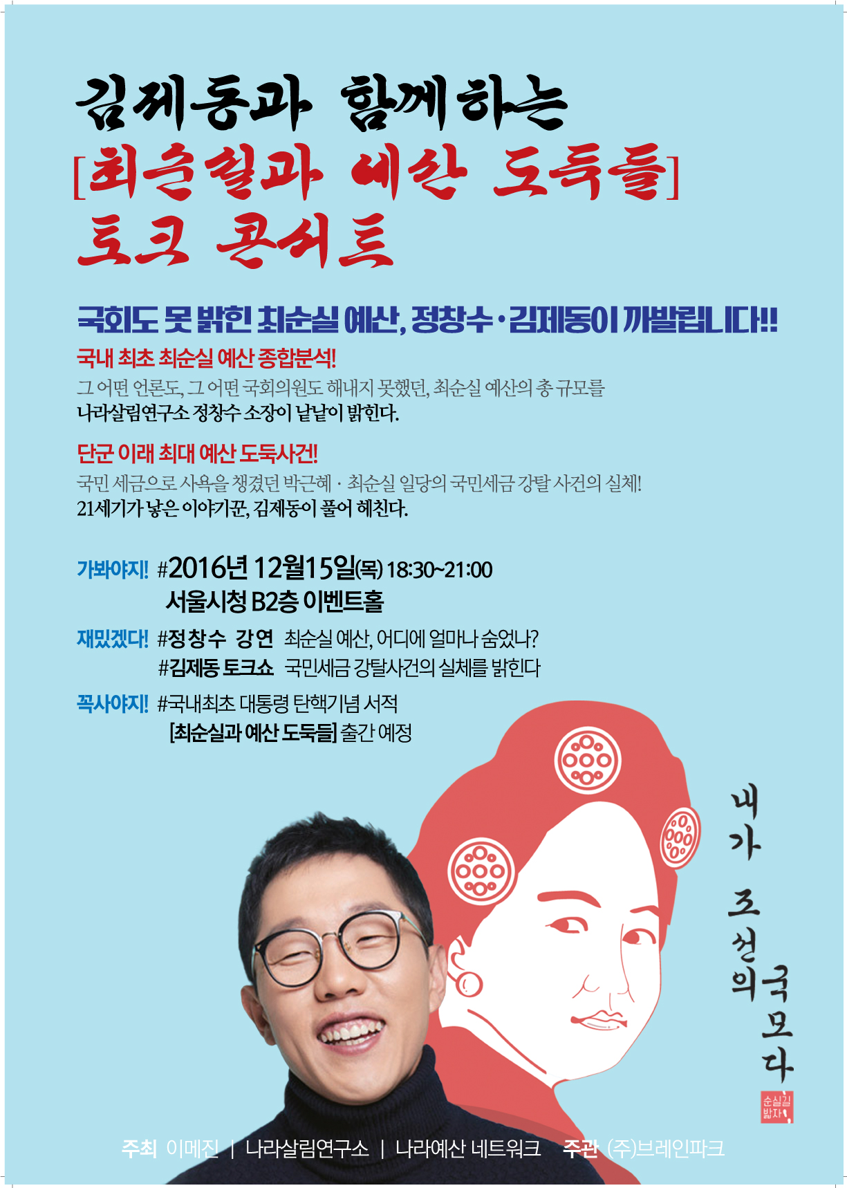 금, 2016/12/02- 12:21 에 익명 (미확인) 에 의해 제출됨 [0] 관련 개인/그룹 국민의 명령 토론광장 지역 마포구 링크 http://www.powertothepeople.kr/comm/bbs/board.php?bo_table=discussion&wr_id=3382 Tags 김제동 콘서트 정창수 콘서트 예산도독 예산 콘서트 최순실 예산 Like 0 Dislike 0 643 views 댓글 달기 이름 제목 Comment CAPTCHA 스펨 사용자 차단 질문 저장 Preview