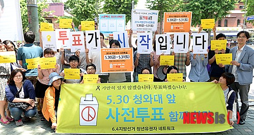 5..30 청와대앞 사전투표 함께 하기 캠페인 기사