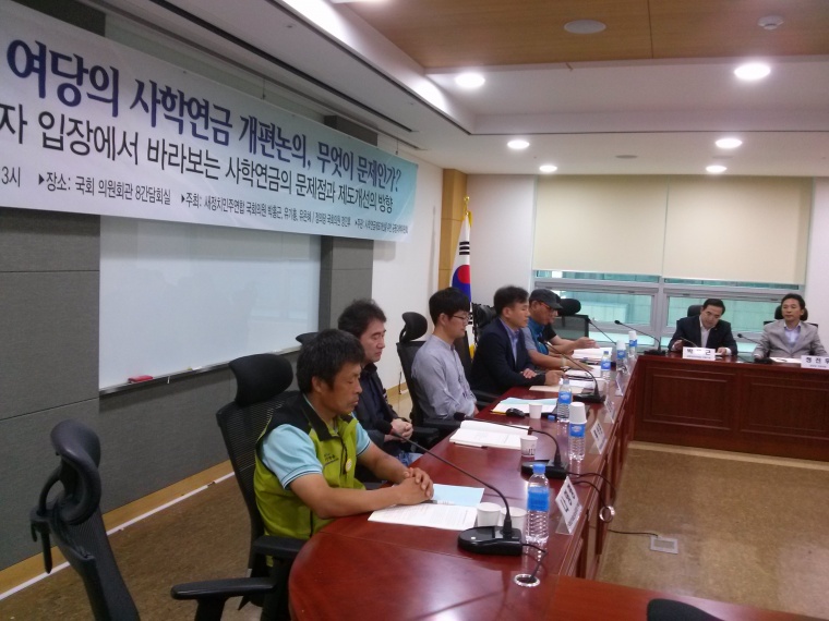 ‘가입자 입장에서 바라보는 사학연금의 문제점과 제도개선의 방향’을 모색하기 위해 마련된 이날 토론회는 새정치민주연합 박홍근, 유기홍, 유은혜 의원과 정의당 정진후 의원이 공동주최하였으며, 사학연금공대위가 주관하였다.