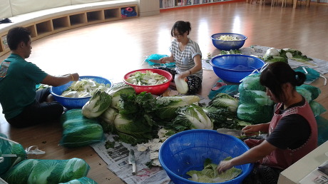 무려 100포기의 배추를 작업했죠.