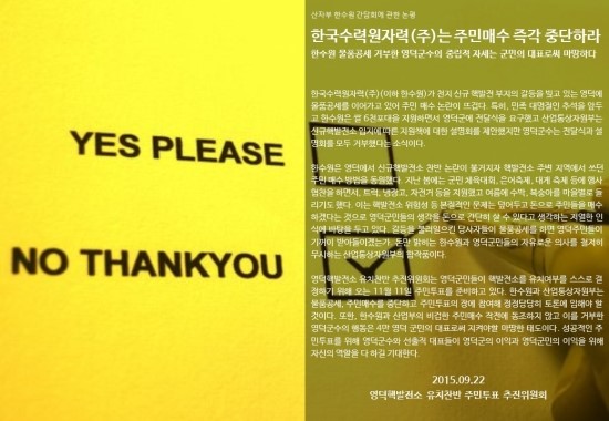 [출처] 산자부-한수원의 영덕 간담회에 관한 논평|작성자 주민투표 추진위