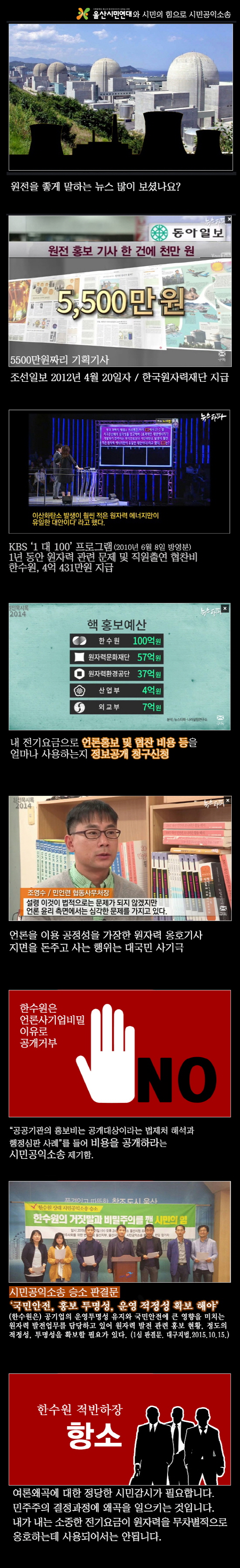 한수원(한국수력원자력)이 언론사에 집행한 홍보비, 협찬비 내역을 공개하라는 공익소송입니다.