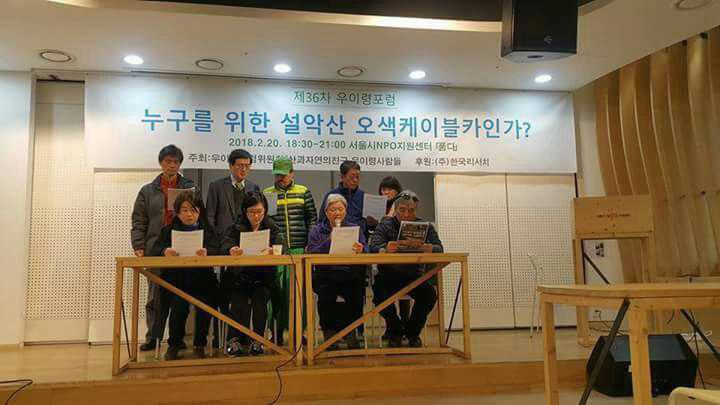 지난 1월 일반시민 350여명이 「설악산 천연보호구역 문화재현상변경허가 취소소송」을 제기했다. 문화재청이 천연보호구역인 설악산에 케이블카를 설치할 수 있게 허가한 것에...