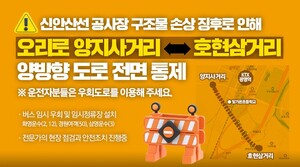 오리로 양지사거리↔호현삼거리 양방향 도로 전면 통제 및일부 버스 정류장 미정차 안내 통제 구간 [오리로 양지사거리 ~ 호현삼거리] 총 2km 양방향 전면 통제 중 통제…