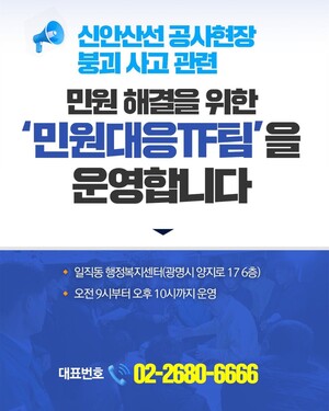 광명시, 신안산선 공사현장 붕괴 사고 관련민원 해결을 위한 ‘민원대응TF팀’을 운영합니다 신속한 사고 처리 및 민원을 해결 … 안전점검·지원반, 복구지원반, 회복지원반, 홍보반…