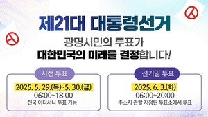 광명시가 제21대 대통령 선거 시민 참여를 독려하고 나섰다. 시는 오는 6월 3일 대선이 20일 앞으로 다가옴에 따라 시민들이 주권자로의 권리와 책임을 다할 수 있도록 투표…